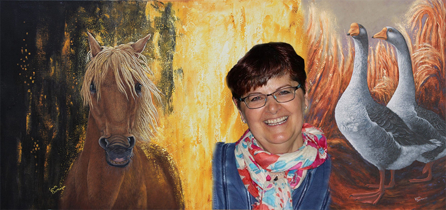 suis spécialisée dans l'art animalier. Par mes œuvres, je transmets ma