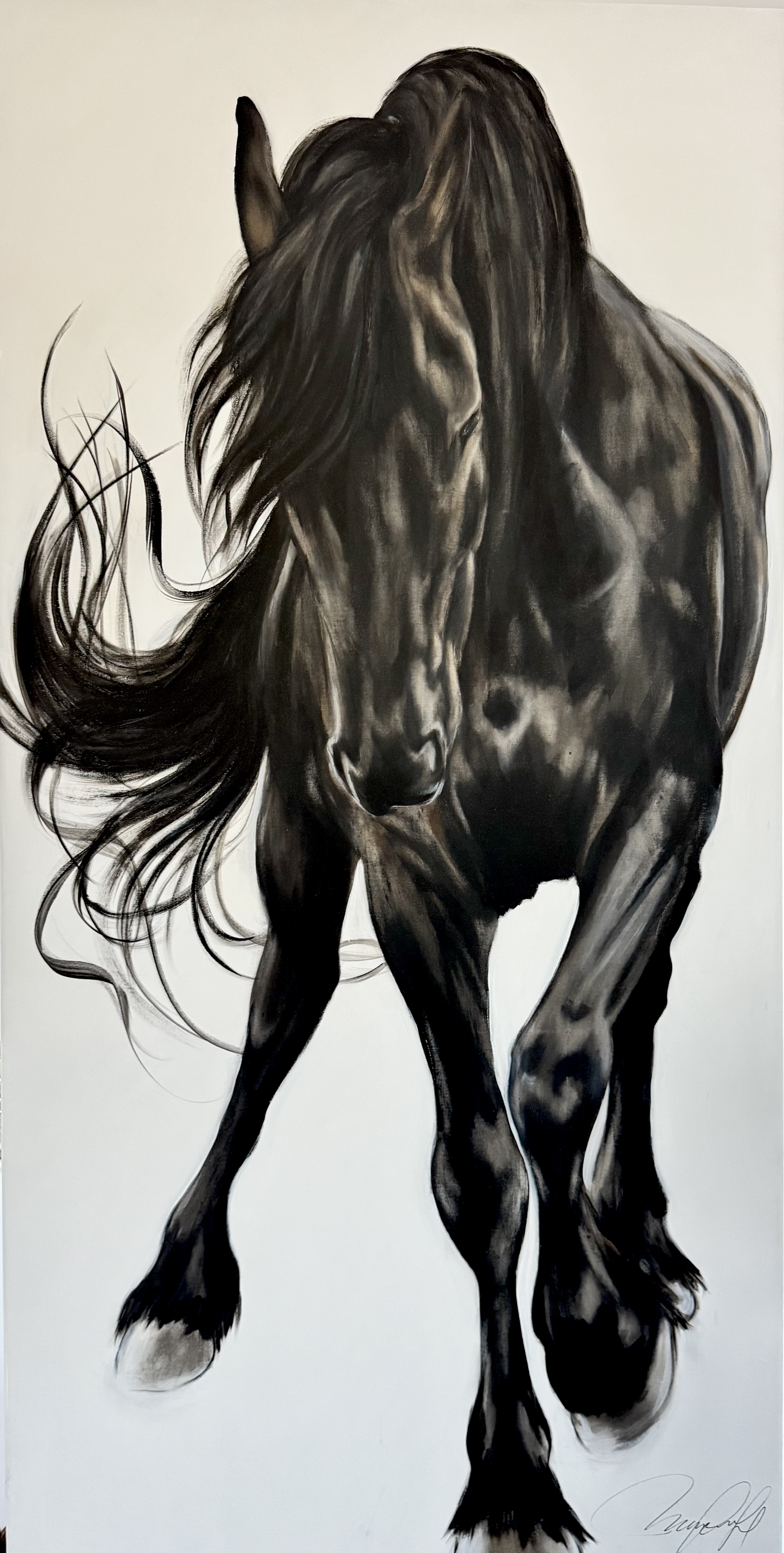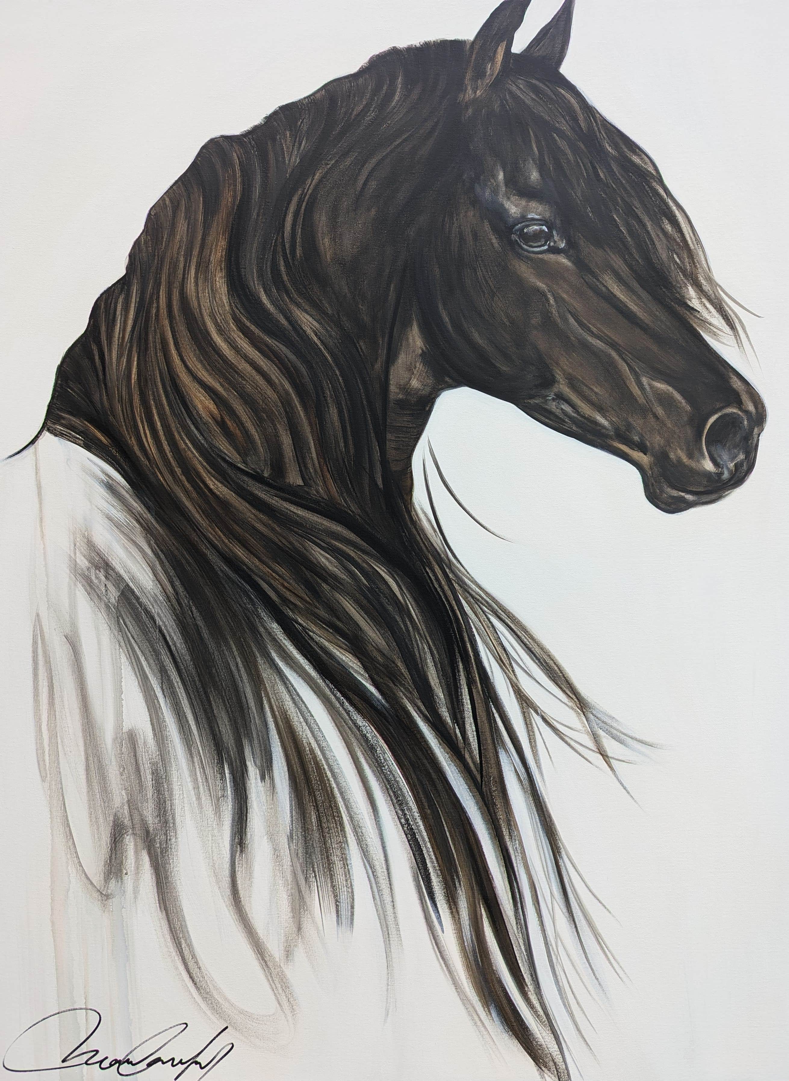 Artiste peintre professionnelle spécialisée en art équin, je propose une exploration intime du cheval qui met en lumière la noblesse de l’animal à travers des portraits évocateurs. Dans mes œuvres, je présente le cheval dans un esprit de pureté en mettant de l’avant sa sensibilité qui, caractérise mon sujet d’inspiration. ![]() En respectant chacune des races de chevaux dont je m’inspire, ainsi que la personnalité propre à chaque individu, je mets l’accent sur les sentiments qui sont suscités. ![]() J’invite le spectateur à ressentir une connexion émotionnelle profonde avec le sujet, le cheval. De plus, la neutralité des fonds impose davantage la noblesse de l’animal et ne comporte aucune distraction autre que le sujet proposé. Ainsi, c’es l’émotion dégagée qui est au coeur de mes créations. Mes œuvres invitent à découvrir le cheval dans toute sa majesté et sa vulnérabilité. ![]() Ayant le souci d’explorer les qualités premières de mon médium, la peinture acrylique, j’ai comme principe d’user de mon inspiration comme prétexte à la peinture et par le fait même de garder comme but ultime de faire évoluer mon travail de peinture et mes recherches à l’atelier. ![]() |