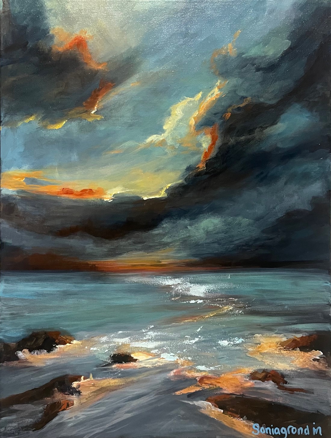 Artiste coloriste, Sonia Grondin est une amoureuse de la nature. Que ce soit la contemplation d’un levé de soleil, d’un ciel étoilé ou de la rosée qui se dépose sur une fleur, chaque regard éveille en elle un soufflem d’inspiration. « Toujours en mouvement, la vie se renouvelle constamment et suggère de nouveaux paysages qui me stimulent à créer. » ![]() À l’huile sur canevas, Sonia peint généralement des scènes rurales, des endroits qui lui sont précieux ou des lieux qui lui apportent des moments de zénitude et de recueillement. Sa palette de couleurs est franche, lumineuse et harmonieuse. D’une gestuelle spontanée, elle apprécie travailler à la spatule afin de réaliser des textures. ![]() Elle souhaite que le spectateur prenne le temps de savourer le moment présent en observant ses œuvres. Que celles-ci puissent apporter une paix intérieure et une sensation de bien-être. |